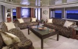 Main Salon: On entering the main salon the first impression is of the timeless appeal and quality of polished timber finishes. On closer inspection the wood panelling is revealed to be a rare Madrona burr with intricate grain patterns book-matched by patient craftsmen. The mirror finish achieved on the wood panelling and the architectural furniture has to be seen to be believed. Relax and sink back into any one of the three oversize and sumptuous lounges arranged before the home theatre system, use the remote controls to activate the satellite connection on the Plasma Screen 42 inch television or gaze at the scenery through the large saloon windows.